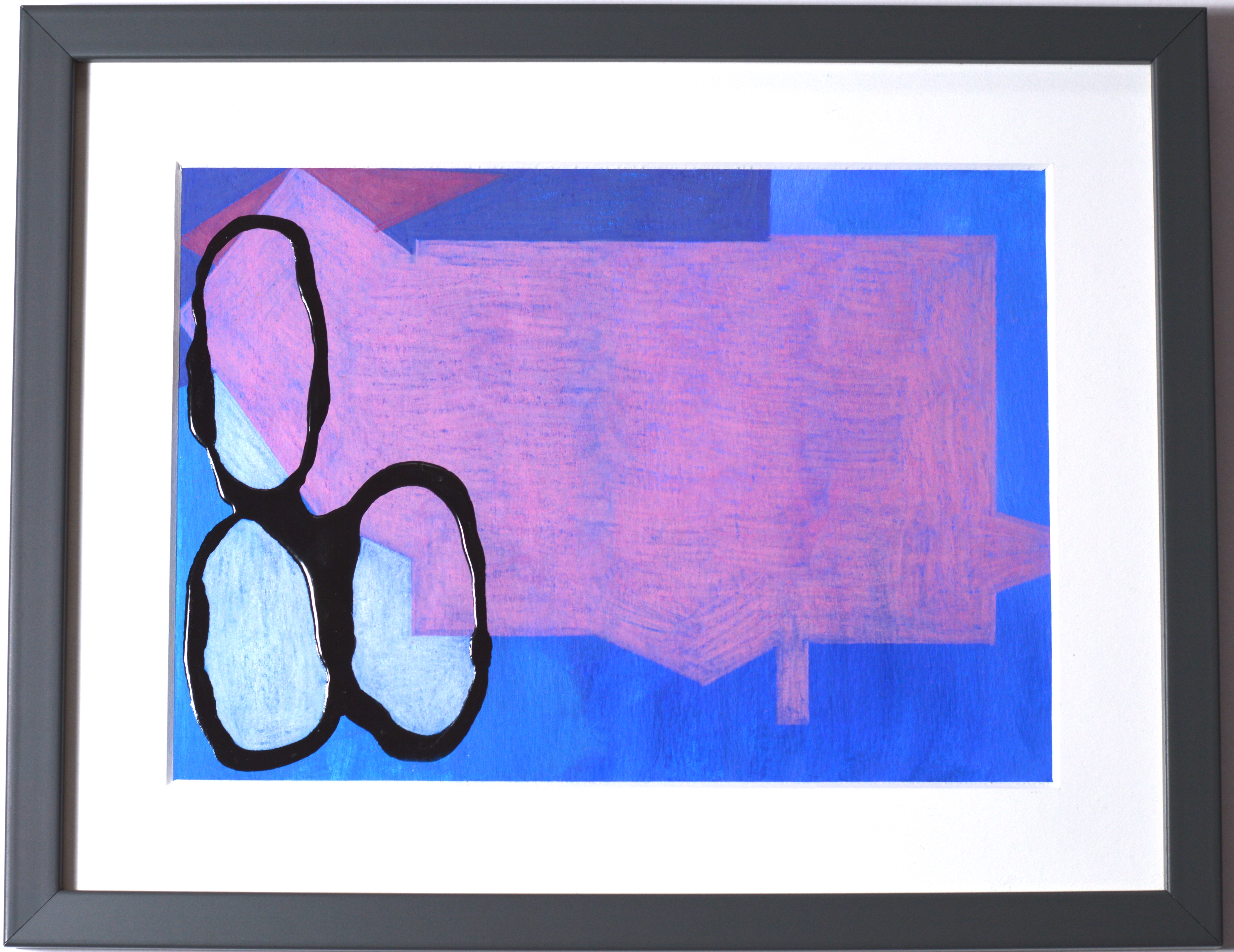 Algorithmic Drawing 6 (Acrylic Paint, Pouring Medium and Coloured Pencil, Framed 28.5cm x 22cm approx, £100):